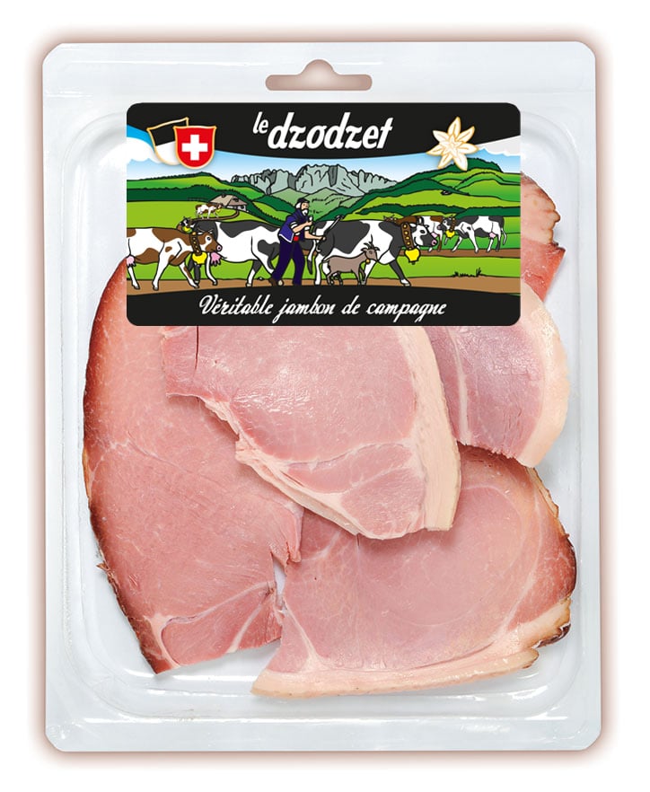 Jambon de campagne fumé 150 Grammes Indication de conditionnement Sous atmosphère modifiée Dénomination spécifique Jambon de derrière, fumé, cuit Conseils de préparation Produit phare du patrimoine culinaire fribourgeois, ce jambon se consomme aussi bien chaud que froid.