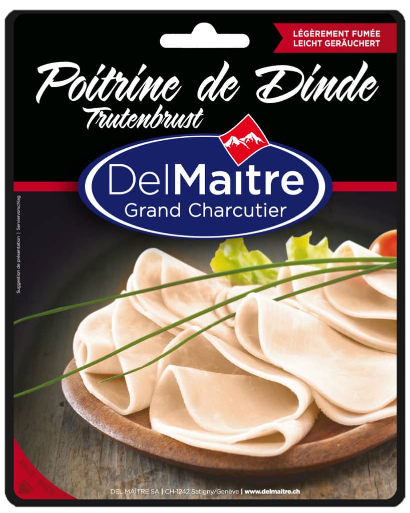 Poitrine de dinde fumée 120 Gramme Indication de conditionnement Sous atmosphère modifiée Dénomination spécifique Produit à base de viande, cuit