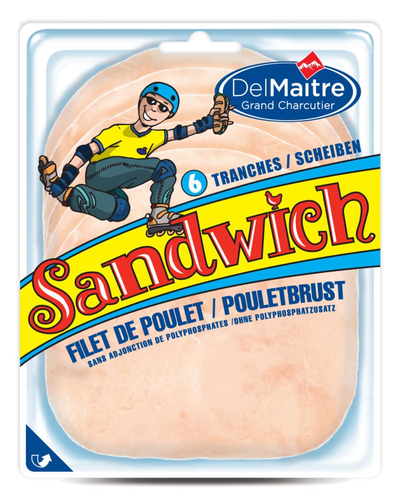 Poitrine de poulet Sandwich 6 pièces / 100 Grammes Indication de conditionnement Sous atmosphère modifiée Dénomination spécifique Jambon de derrière, cuit